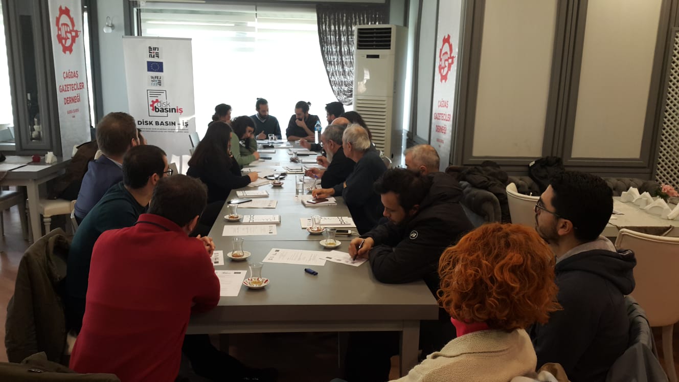 Avrupa Gazeteciler Federasyonu (IFJ/EFJ) ve DİSK Basın İŞ Sendikası tarafından düzenlenen “Yeni Gazetecilik, Yeni Sendika – Dijital Çağda İnsan Hakları Temelli Gazetecilik” isimli sendikal eğitim programı ÇGD Bursa Şubesi ev sahipliğinde gerçekleştirildi. Avrupa Gazeteciler Federasyonu (IFJ/EFJ) Uluslararası Proje Koordinatöre Sarah Bouchetob’un da katıldığı programda, DİSK Basın-İş Yönetim Kurulu Üyesi Ali Ergin Demirhan ve Avukat Abbas Yalçın konu ile ilgili değerlendirmelerde bulundu.
