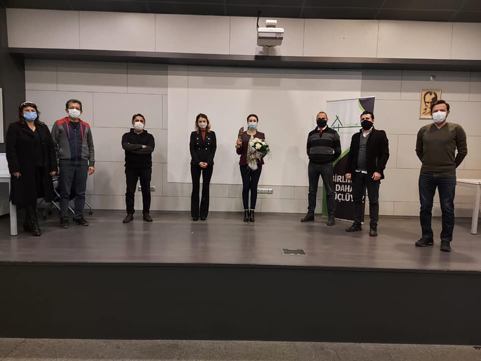 ÇGD’nin 2020 yılı Dayanışma Ödülü, tüm sağlık çalışanlarıyla dayanışma adına Bursa Aile Hekimleri Derneği ve Türkiye Aile Hekimleri Dernekleri Federasyonu Başkanı Dr. Özlem Sezen’e ÇGD Bursa Şube Başkanı Rabia Deniz ve yönetim kurulu üyeleri tarafından takdim edildi. Başkan Rabia Deniz, “En büyük risk grubu sağlık çalışanları olarak canınızı ortaya koydunuz, canla başla çalıştınız. ‘Mesleğimiz önce gelir’ dediniz. Pandeminin başından beri hastalığın enfeksiyon zincirinin kırılabilmesi için, birinci basamağın desteklenmesi ve güçlendirilmesi gerektiği ifade edildi. Ancak maalesef sesinizi duymadılar. Bu yoğun süreçte bile şiddete uğrayan sağlık çalışanları tükendi. Covid-19’un sizler için meslek hastalığı olarak kabul edilmesi talebini bir kez daha bu ödülle dile getiriyoruz” ifadelerini kullandı. Dernek Başkanı Dr. Özlem Sezen de tüm ÇGD örgütüne teşekkür etti.