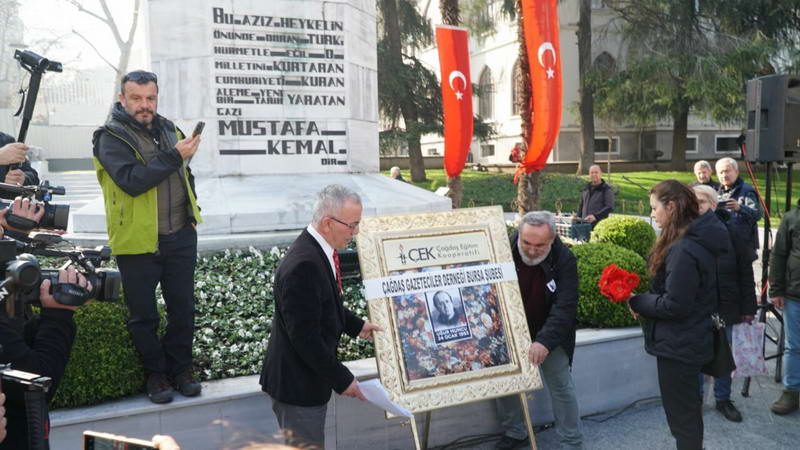 Çağdaş Gazeteciler Derneği (ÇGD) Bursa Şubesi tarafından düzenlenen ve Setbaşı Köprüsü’nde Atatürk Heykeli’ne doğru gerçekleşen anma törenine Bursa Büyükşehir Belediye Başkanı Mustafa Bozbey, Osmangazi Belediye Başkanı Erkan Aydın, Nilüfer Belediye Başkanı Şadi Özdemir, Cumhuriyet Halk Partisi (CHP) Bursa Milletvekilleri Hasan Öztürk ve Nurhayat Altaca Kayışoğlu, İYİ Parti Bursa Milletvekili Selçuk Türkoğlu, CHP İl Başkanı Nihat Yeşiltaş, CHP Osmangazi İlçe Başkanı Cengiz Çelikten, ÇGD Bursa Şube Başkanı Yüksel Baysal ve çok sayıda gazeteci katıldı.