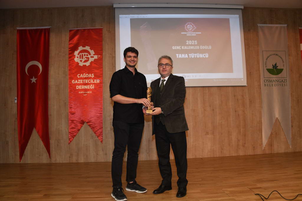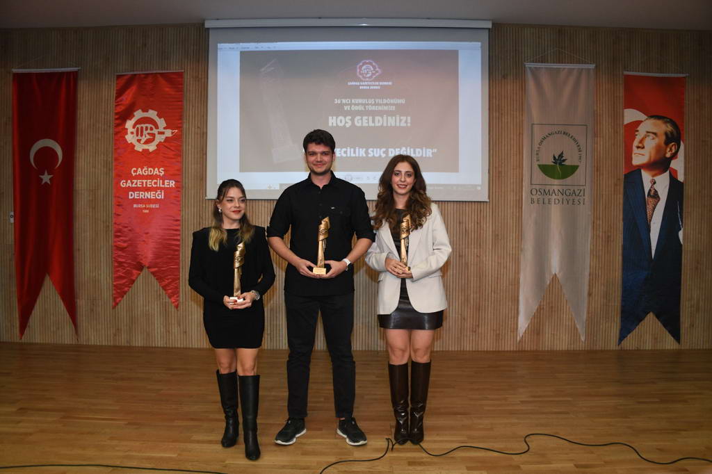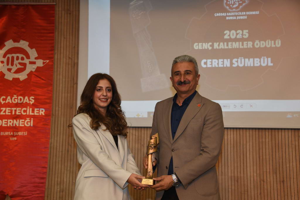 Bursa’nın yetiştirdiği ve gelecek vaat eden genç gazeteciler ise “Genç Kalemler Ödülü’ne layık görüldü. Ceren Sümbül’e ödülünü CHP Bursa İl Başkanı Nihat Yeşiltaş verirken, Merve Deniz Ekici ise ödülünü CHP Bursa Milletvekili Orhan Sarıbal’ın elinden aldı. Taha Tütüncü’ye ise ödülünü Bursa Barosu Başkanı Av. Metin Öztosun takdim etti.
